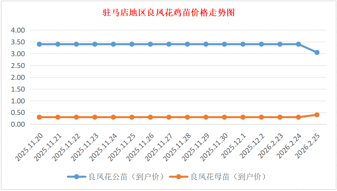 2月25日驻马店地区良凤花、岭南黄鸡苗价格行情