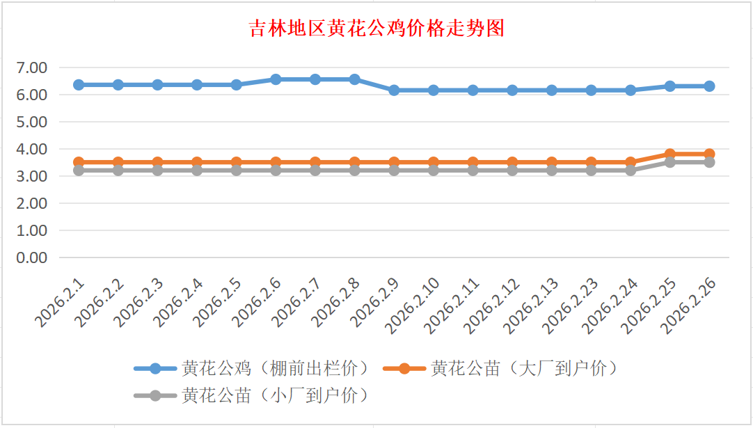 2月26日吉林黄花公鸡、鸡苗价格行情