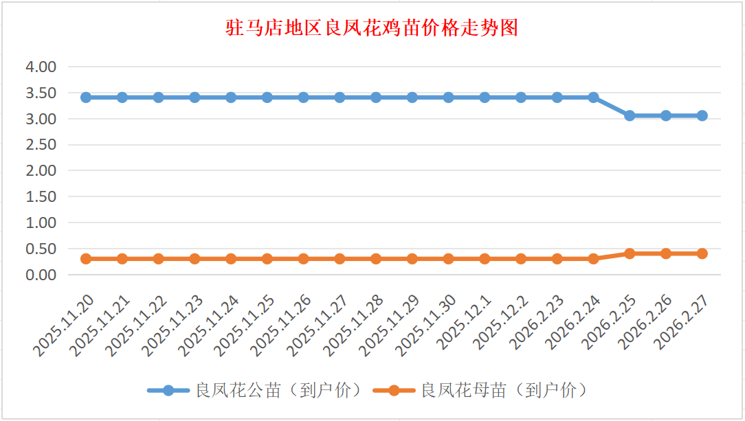 2月27日驻马店地区良凤花鸡苗价格行情
