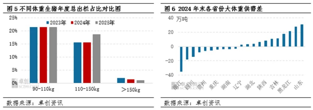 综上,2025年末能繁母猪存栏量虽明显下滑,但因减产群体中中小场及散户居多,规模场较少,一方面导致规模场占比提升,另一方面带动产效提升,2026年供应或仍过剩。未来调控产能政策或继续推行,母猪数量或继续下滑,而2026年产能过剩、养殖亏损或推动自然减产亦加速进行。规模企业成本调控到位或可穿过亏损周期,而大猪供应缺口扩大或推动中小规模场及散户转型为大猪的主要养殖群体,以此保证穿过亏损周期。