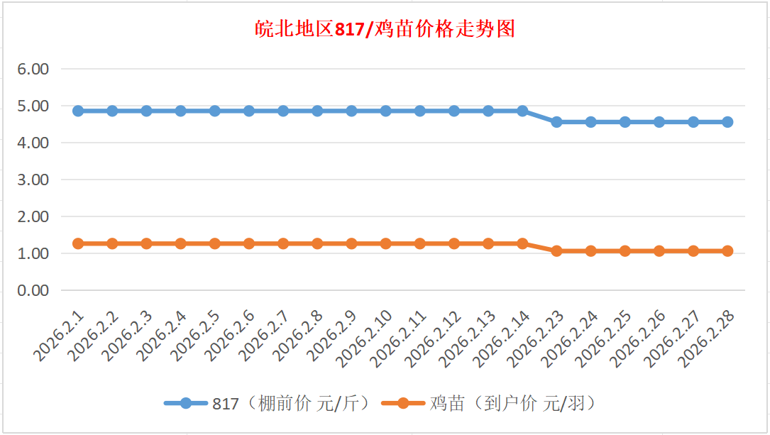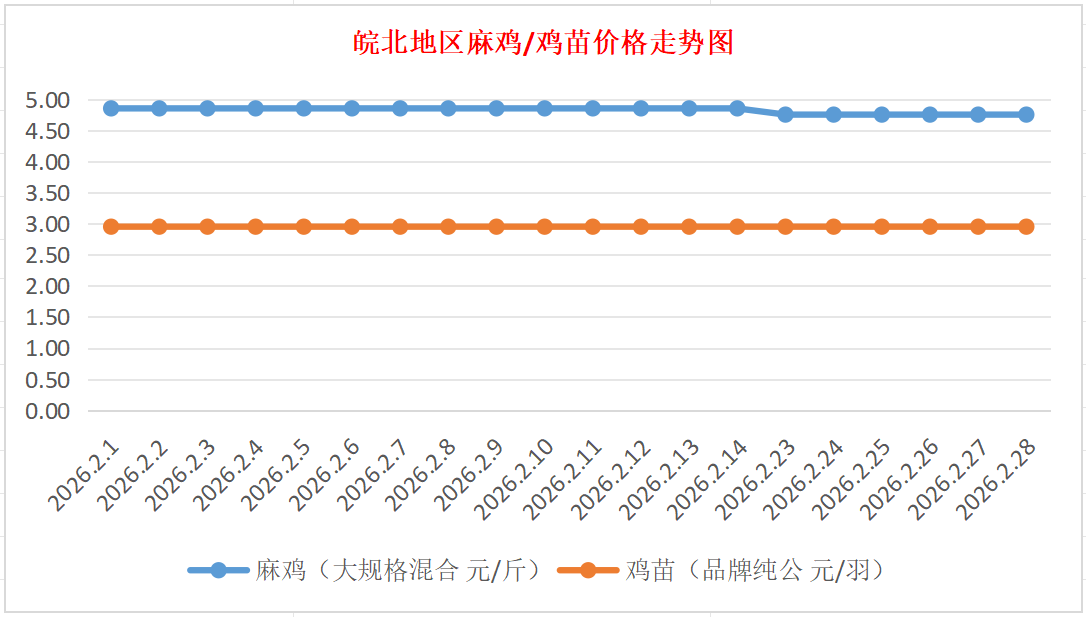 鸡病专业网独家信息:2026年2月28日皖北地区817-麻鸡行情最新走势