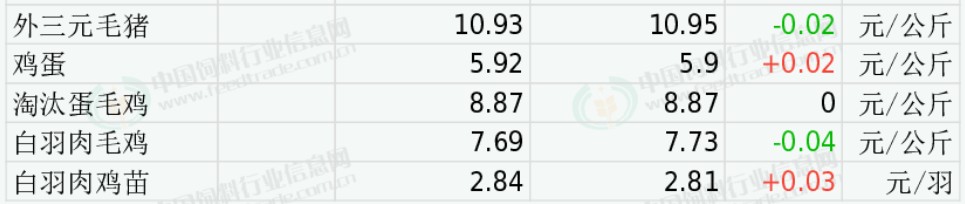 白羽肉毛鸡价格下跌。养殖端出栏集中、供应宽松,屠宰企业复工但收购谨慎、压价明显,终端消费疲软、走货不畅,叠加饲料成本高位、养殖利润微薄,预计近期白羽肉鸡价格将偏弱震荡。今日主产区山东白羽肉毛鸡均价7.27元/公斤,较昨日价格下跌0.05;辽宁均价7.80元/公斤,较昨日价格下跌0.10;主销区江苏均价8.74元/公斤,与昨日价格持平。