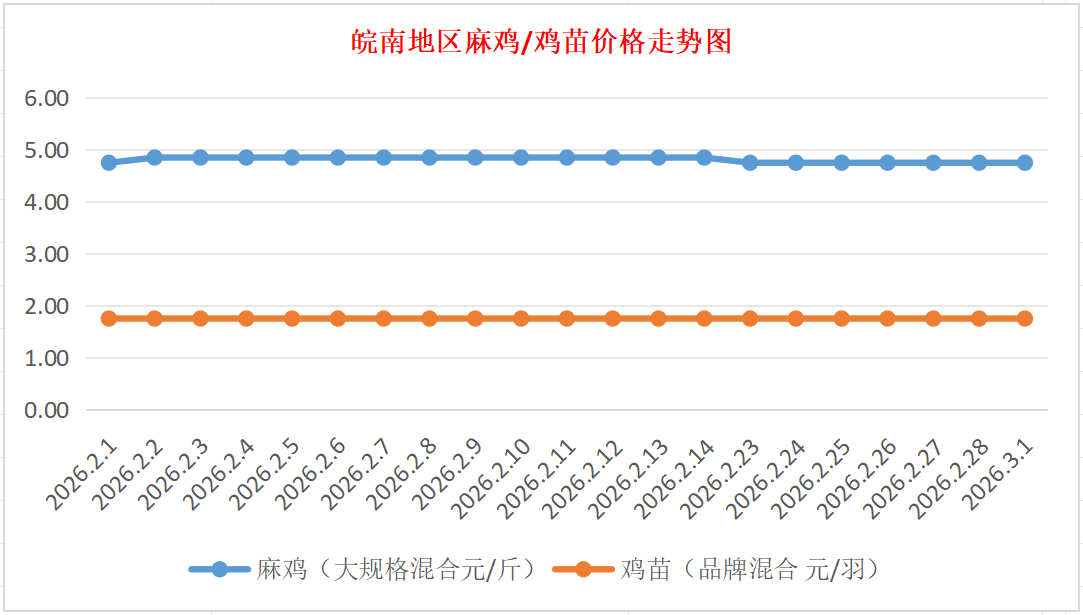 鸡病专业网独家信息:2026年3月1日皖南地区817-麻鸡行情最新走势