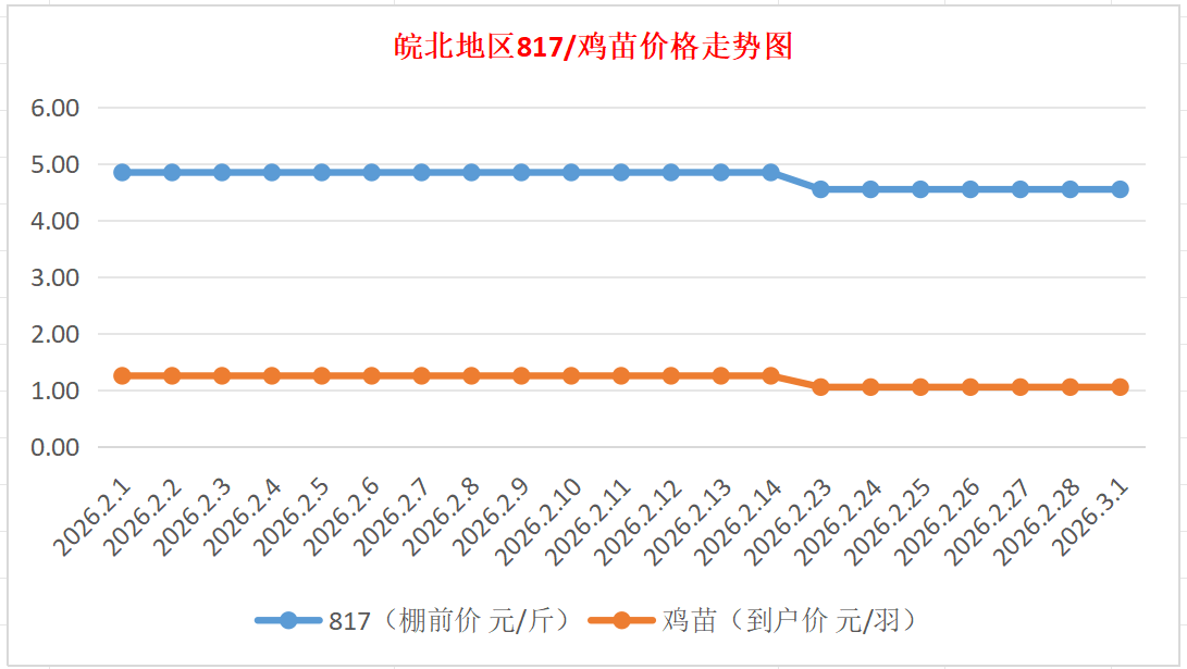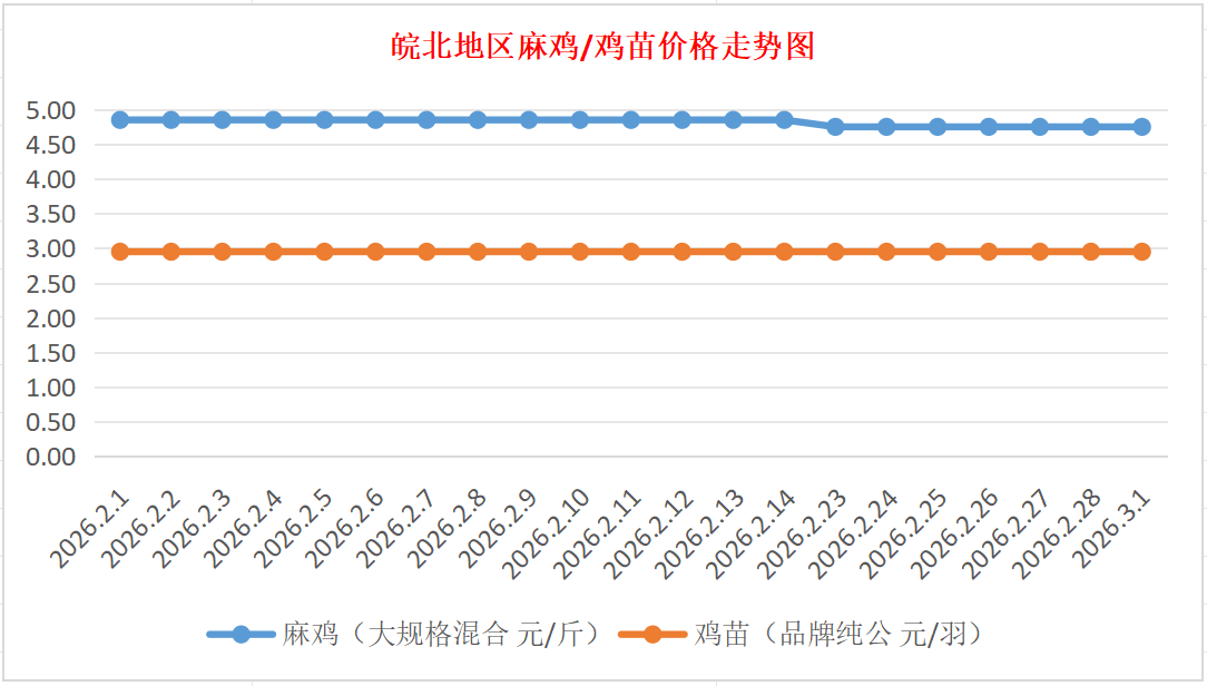 鸡病专业网独家信息:2026年3月1日皖北地区817-麻鸡行情最新走势