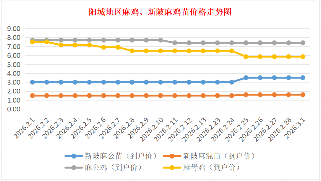 阳城地区麻鸡、新陂麻鸡苗价格走势图(来源:鸡病专业网)