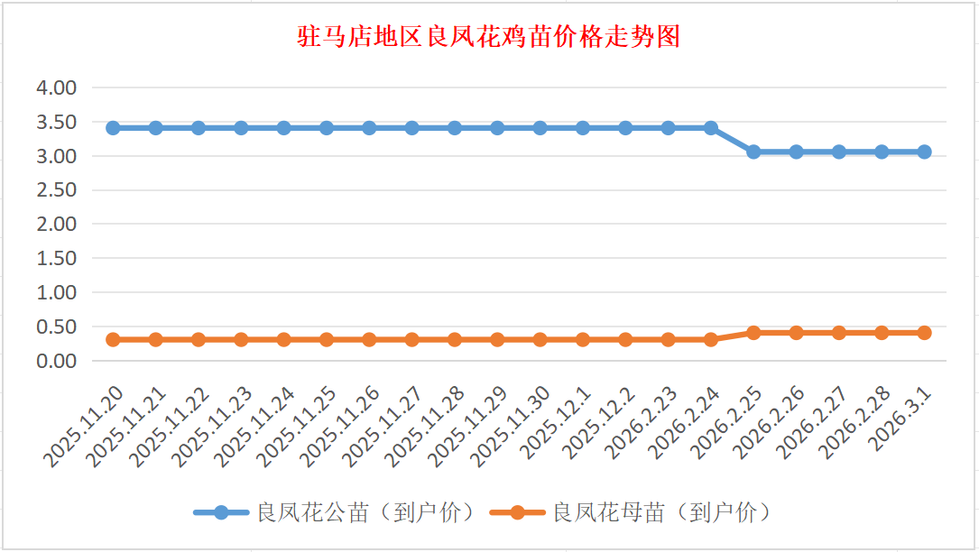 3月1日驻马店地区良凤花鸡苗价格行情