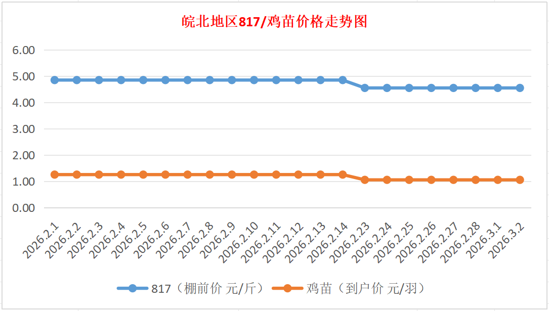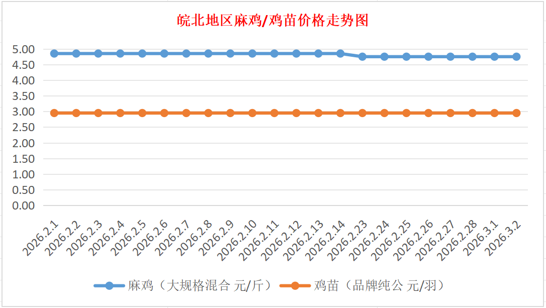 鸡病专业网独家信息:2026年3月2日皖北地区817-麻鸡行情最新走势