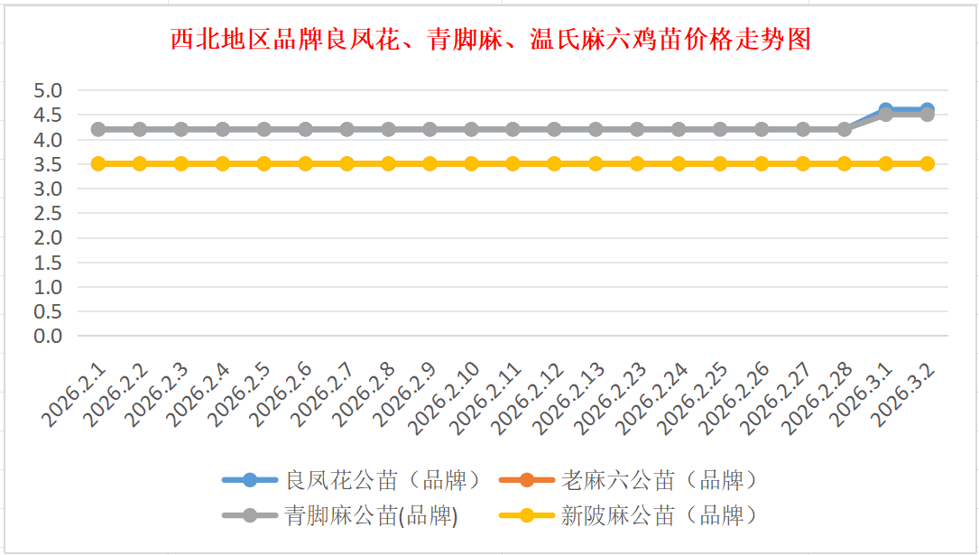 品牌新陂麻:价格稳定,到户价公苗4.50元/羽,稳。