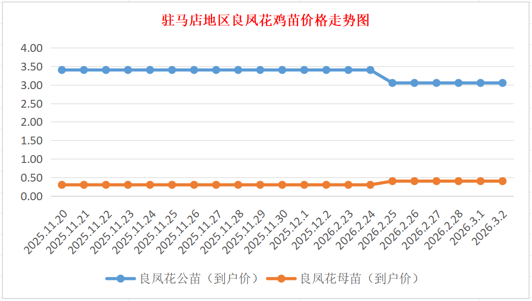 3月2日驻马店地区良凤花鸡苗价格行情