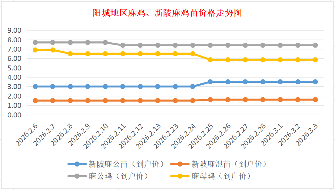 阳城地区麻鸡、新陂麻鸡苗价格走势图(来源:鸡病专业网)