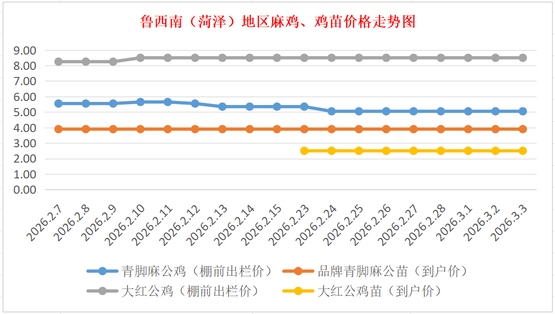 3月3日鲁西南(菏泽)地区麻鸡、鸡苗价格行情