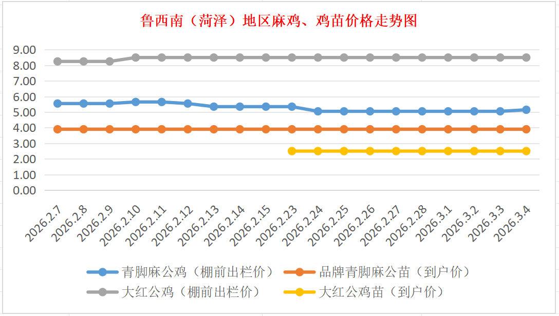 3月4日鲁西南(菏泽)地区麻鸡、鸡苗价格行情
