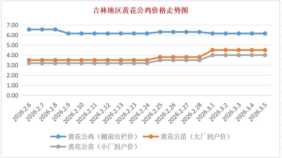 3月5日吉林黄花公鸡、鸡苗价格行情