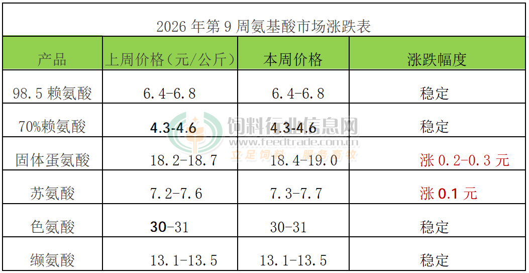 2026年第9周氨基酸市场动态