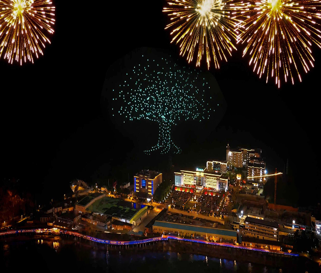 3月3日晚7点,主题为《马越盛世 福满圣农》的焰火晚会璀璨启幕。焰火晚会分为《一花一树一世界》、《祥瑞献福》、《骏跃福满新春》三个篇章,夜空中,五彩斑斓的艺术焰火绚丽绽放,有高空礼花、艺术特效、组合造型,还穿插进行无人机表演。顿时焰火耀腾光泽夜空,爆燃元宵之夜。圣农集团员工、光泽市民大快朵颐美奂美轮的视觉盛宴,不断响起热烈的掌声