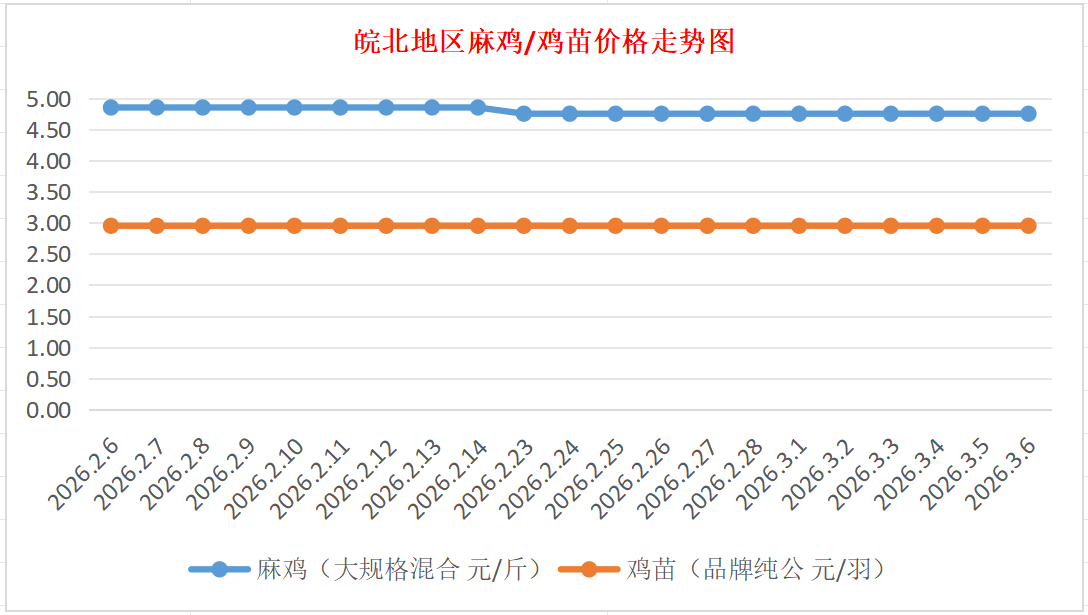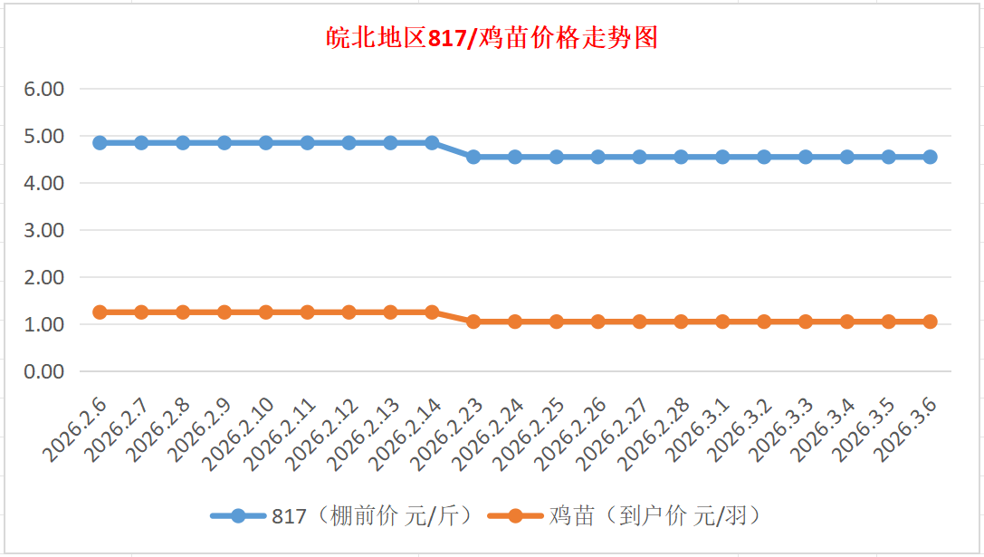 鸡病专业网独家信息:2026年3月6日皖北地区817-麻鸡行情最新走势
