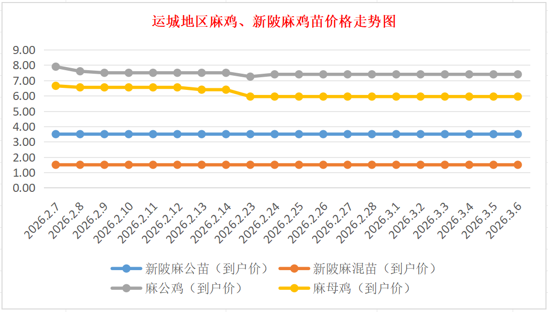 运城地区麻鸡、新陂麻鸡苗价格走势图(来源:鸡病专业网)