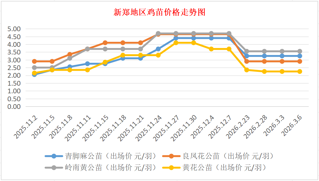 新郑地区鸡苗价格走势图(来源:鸡病专业网)