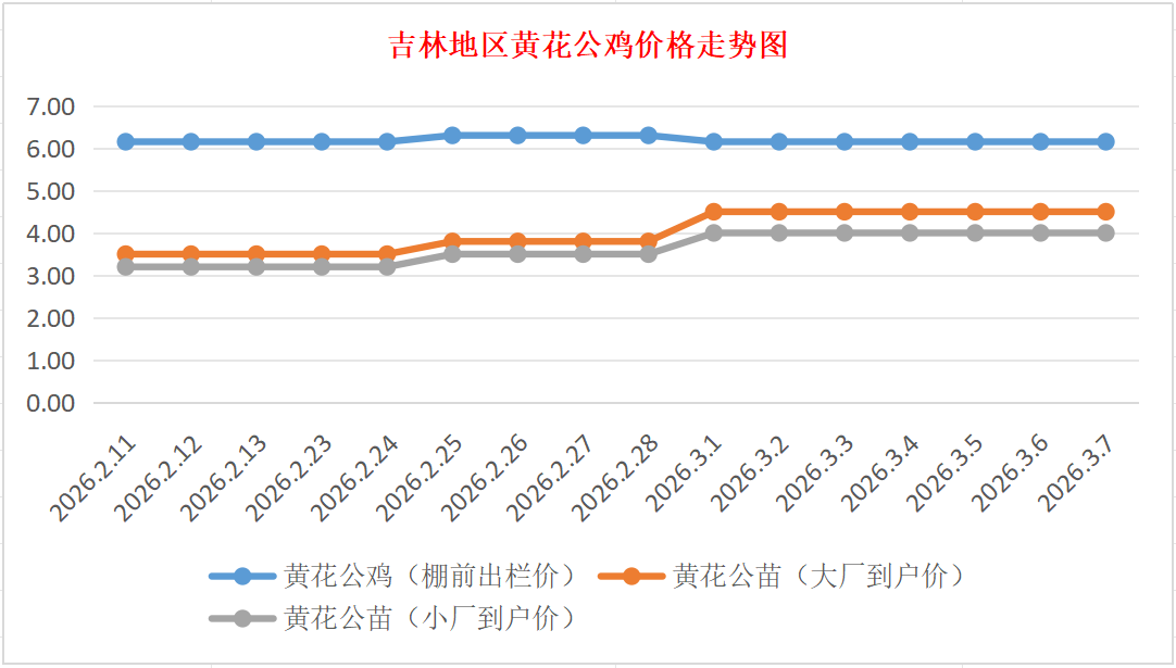 3月7日吉林黄花公鸡、鸡苗价格行情