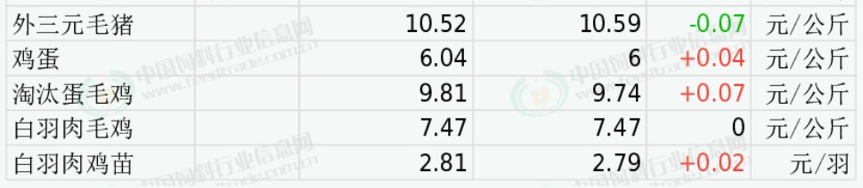 全国均价为 10.52元/公斤,较昨日价格下跌0.52%。当前供应端偏宽松,前期压栏大猪、规模场出栏增加叠加冻品库存偏高,市场供给充足;需求端处于节后淡季,消费偏弱、屠企持续压价收购,养殖端亏损扩大。预计近期仍低位震荡。