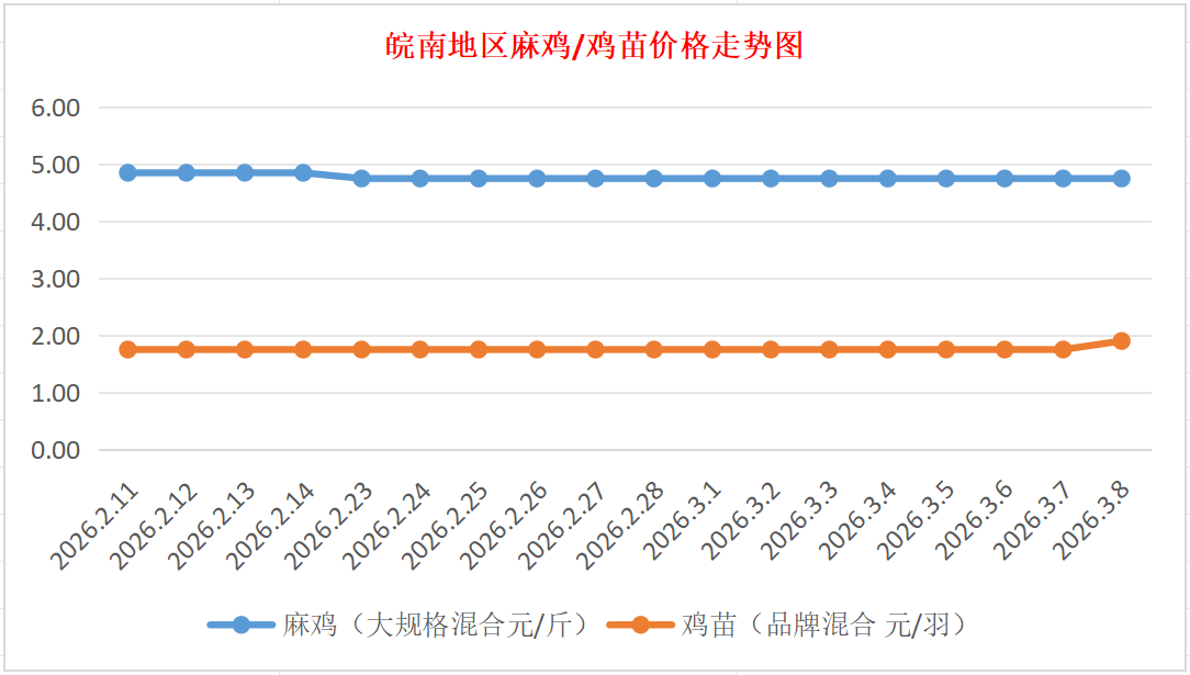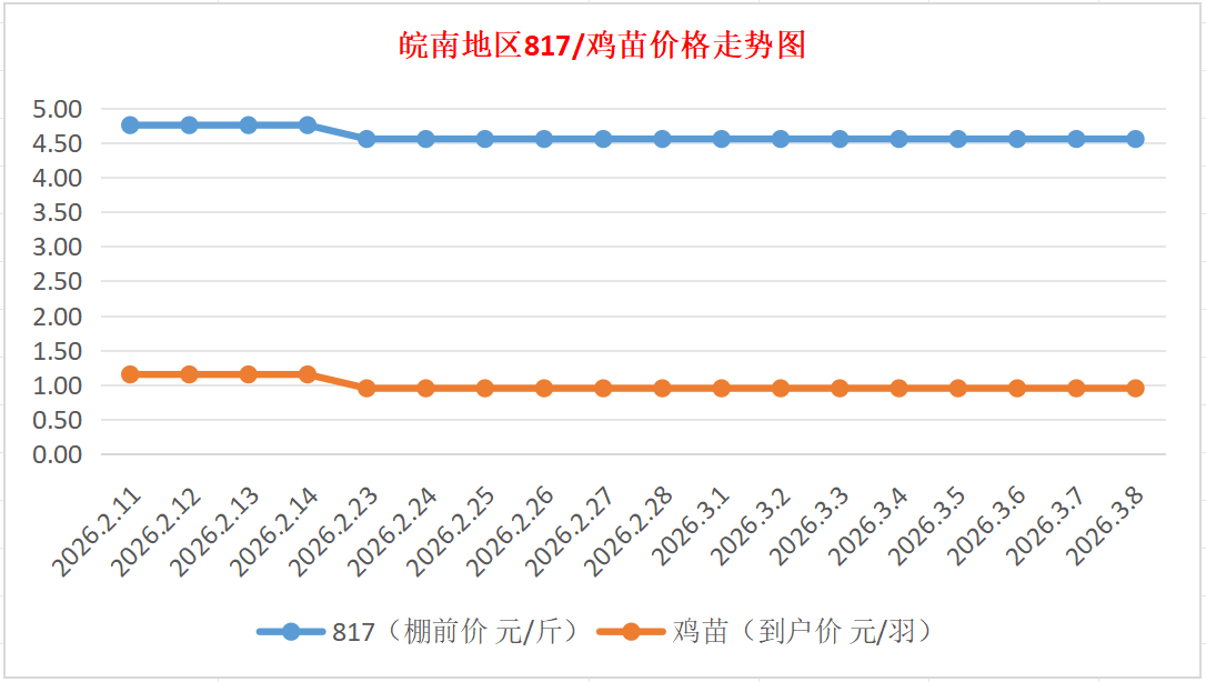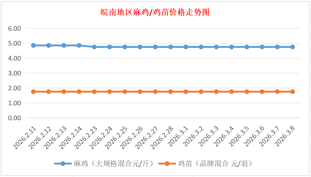 鸡病专业网独家信息:2026年3月8日皖南地区817-麻鸡行情最新走势