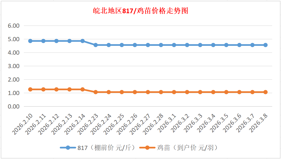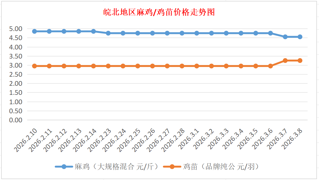 鸡病专业网独家信息:2026年3月8日皖北地区817-麻鸡行情最新走势