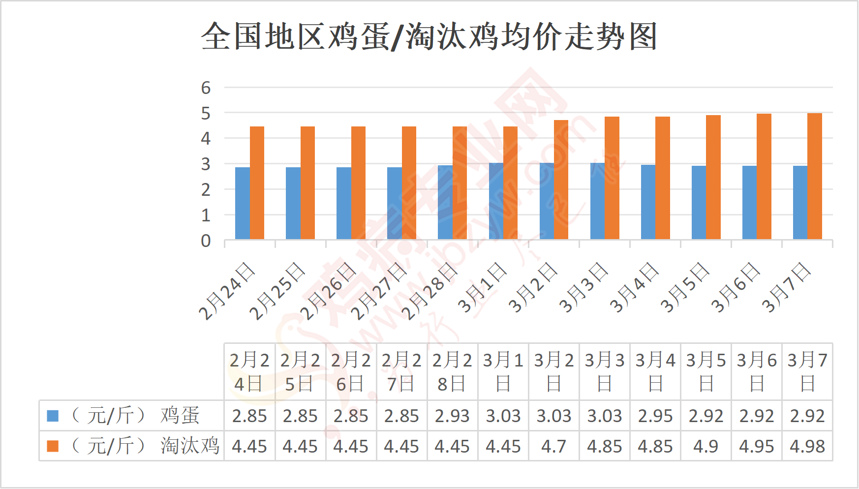 3月7日我国部分地区鸡蛋、淘汰鸡价格汇总