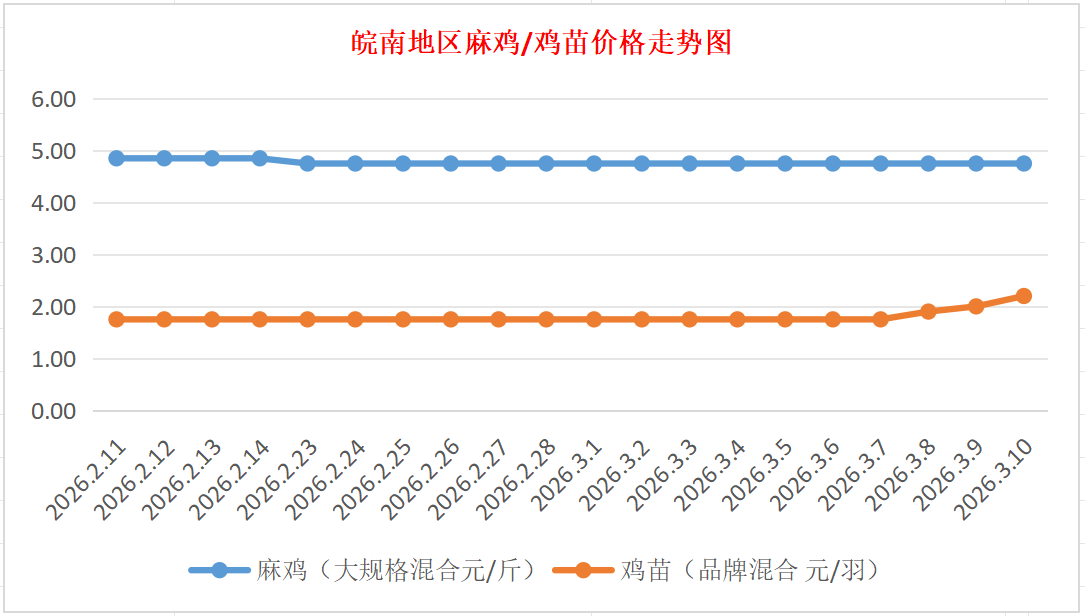 鸡病专业网独家信息:2026年3月10日皖南地区817-麻鸡行情最新走势