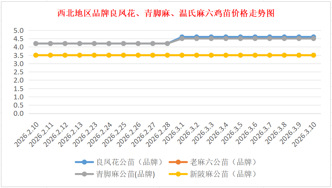 品牌新陂麻:价格稳定,到户价公苗4.50元/羽,稳。