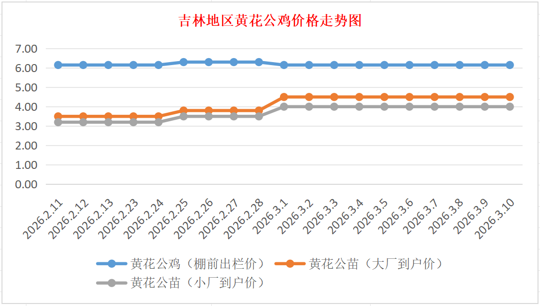 3月10日吉林黄花公鸡、鸡苗价格行情