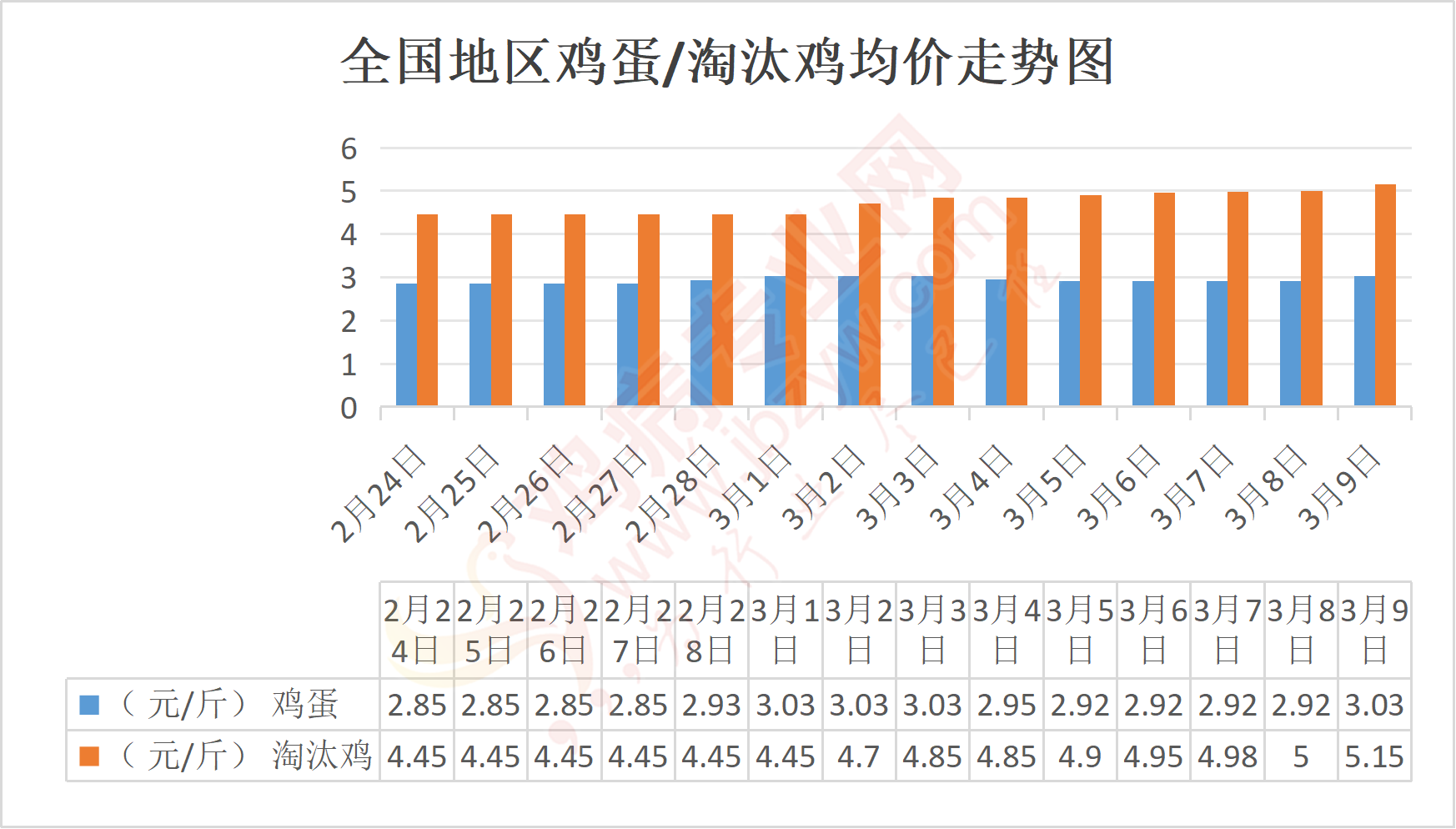 3月9日我国部分地区鸡蛋、淘汰鸡价格汇总