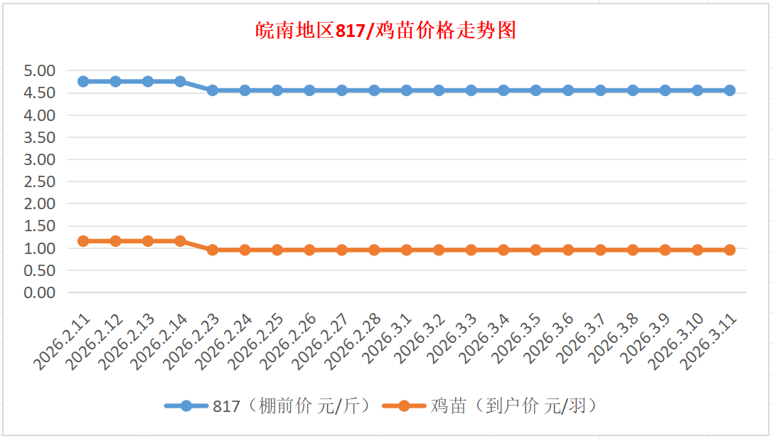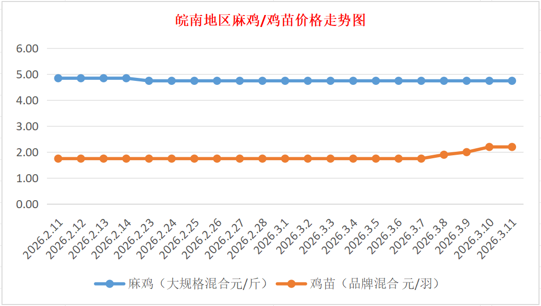 鸡病专业网独家信息:2026年3月11日皖南地区817-麻鸡行情最新走势