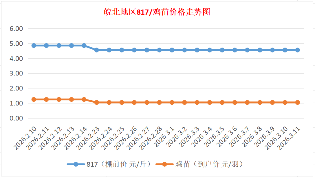鸡病专业网独家信息:2026年3月11日皖北地区817-麻鸡行情最新走势