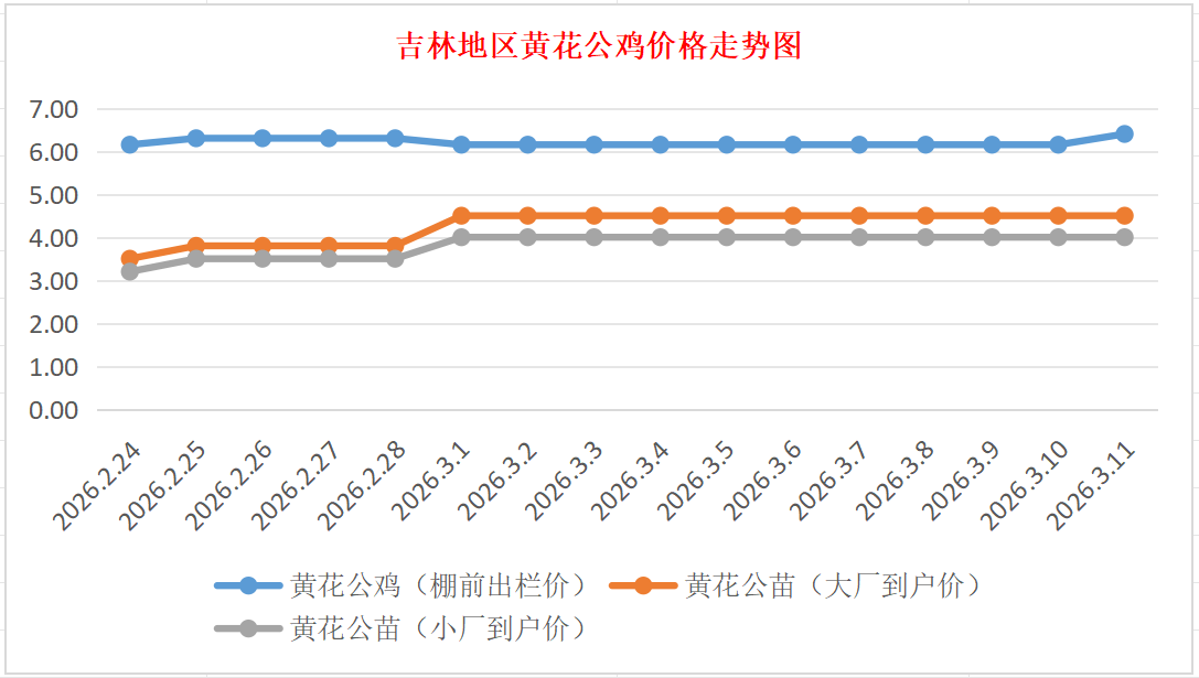 3月11日吉林黄花公鸡、鸡苗价格行情