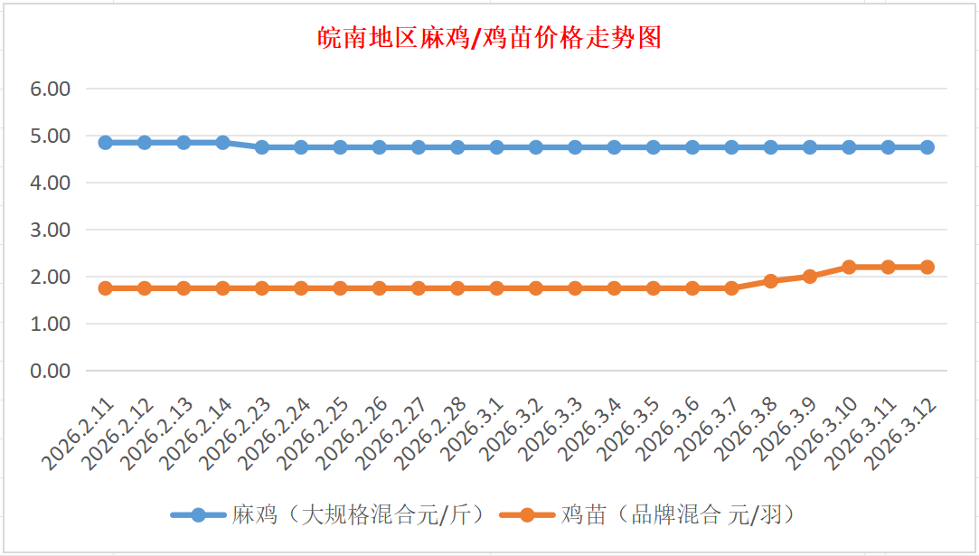 鸡病专业网独家信息:2026年3月12日皖南地区817-麻鸡行情最新走势