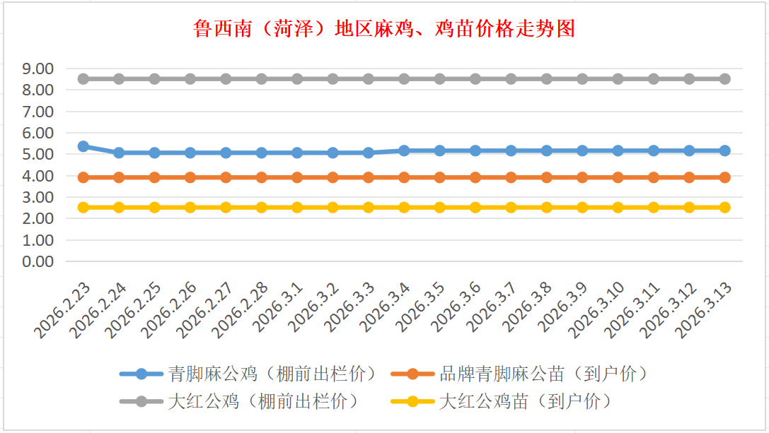 3月13日鲁西南(菏泽)地区麻鸡、鸡苗价格行情