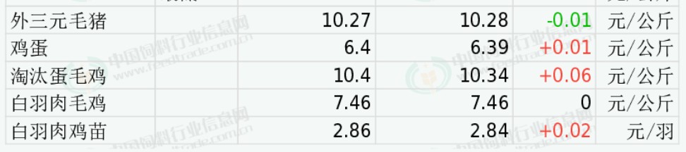 今日鸡蛋价格稳中有涨。当前蛋鸡存栏仍偏高,淘鸡进度偏慢,但鸡蛋库存偏低,需求端受开学复工带动,清明备货逐步启动,叠加成本支撑,蛋价下跌空间有限,预计近期鸡蛋价格稳中调整。今日主产区山东鸡蛋均价6.14元/公斤,与昨日价格持平;河北鸡蛋均价5.88元/公斤,与昨日价格持平;广东鸡蛋均价7.07元/公斤,与昨日价格持平;北京鸡蛋均价6.40元/公斤,与昨日价格持平。