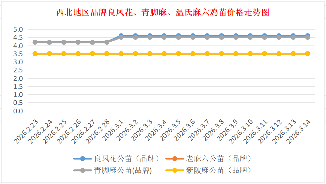 品牌新陂麻:价格稳定,到户价公苗4.50元/羽,稳。