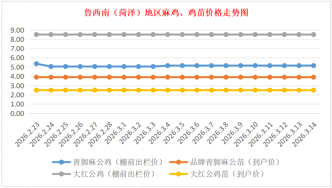 3月14日鲁西南(菏泽)地区麻鸡、鸡苗价格行情
