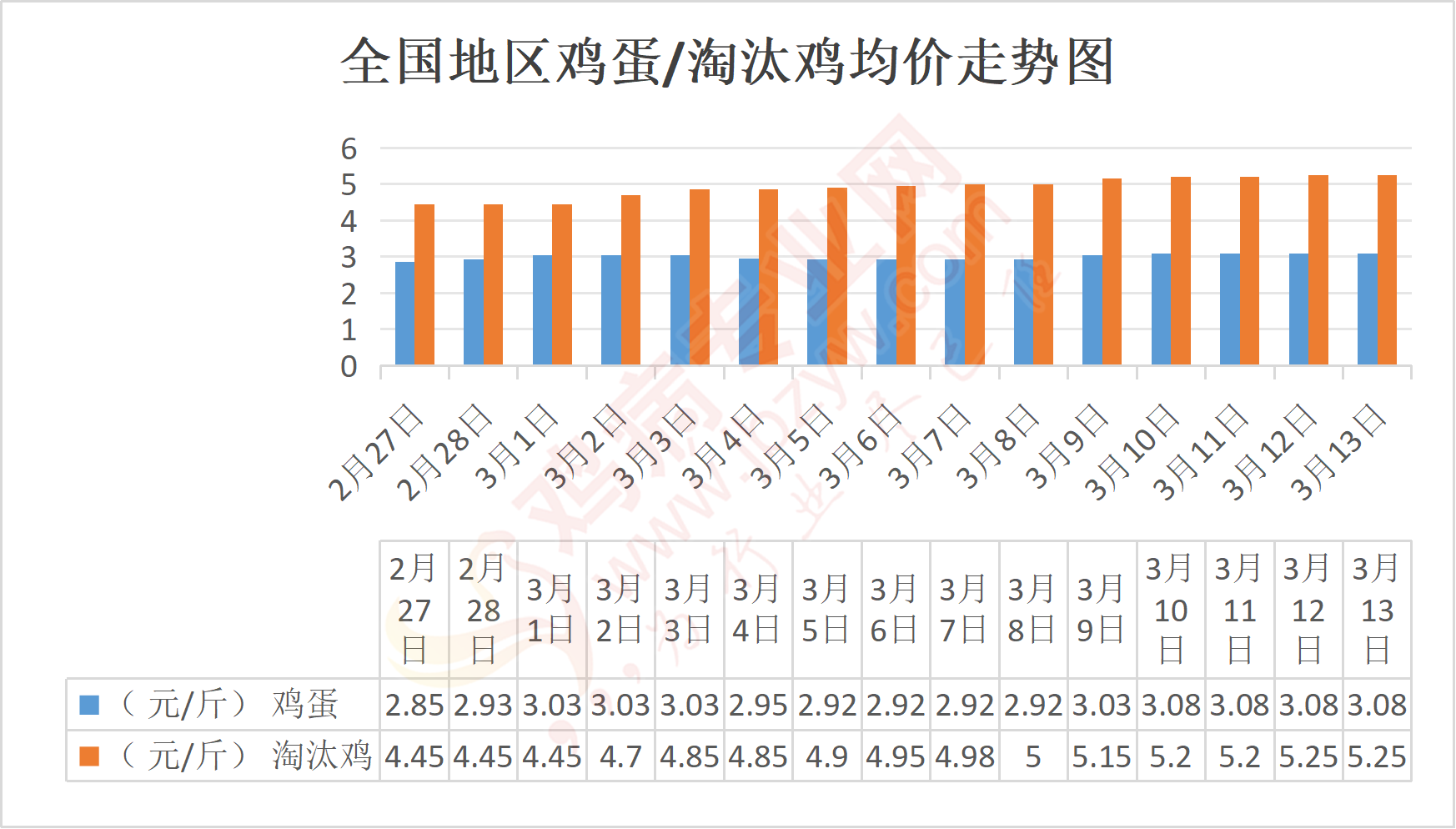 3月13日我国部分地区鸡蛋、淘汰鸡价格汇总