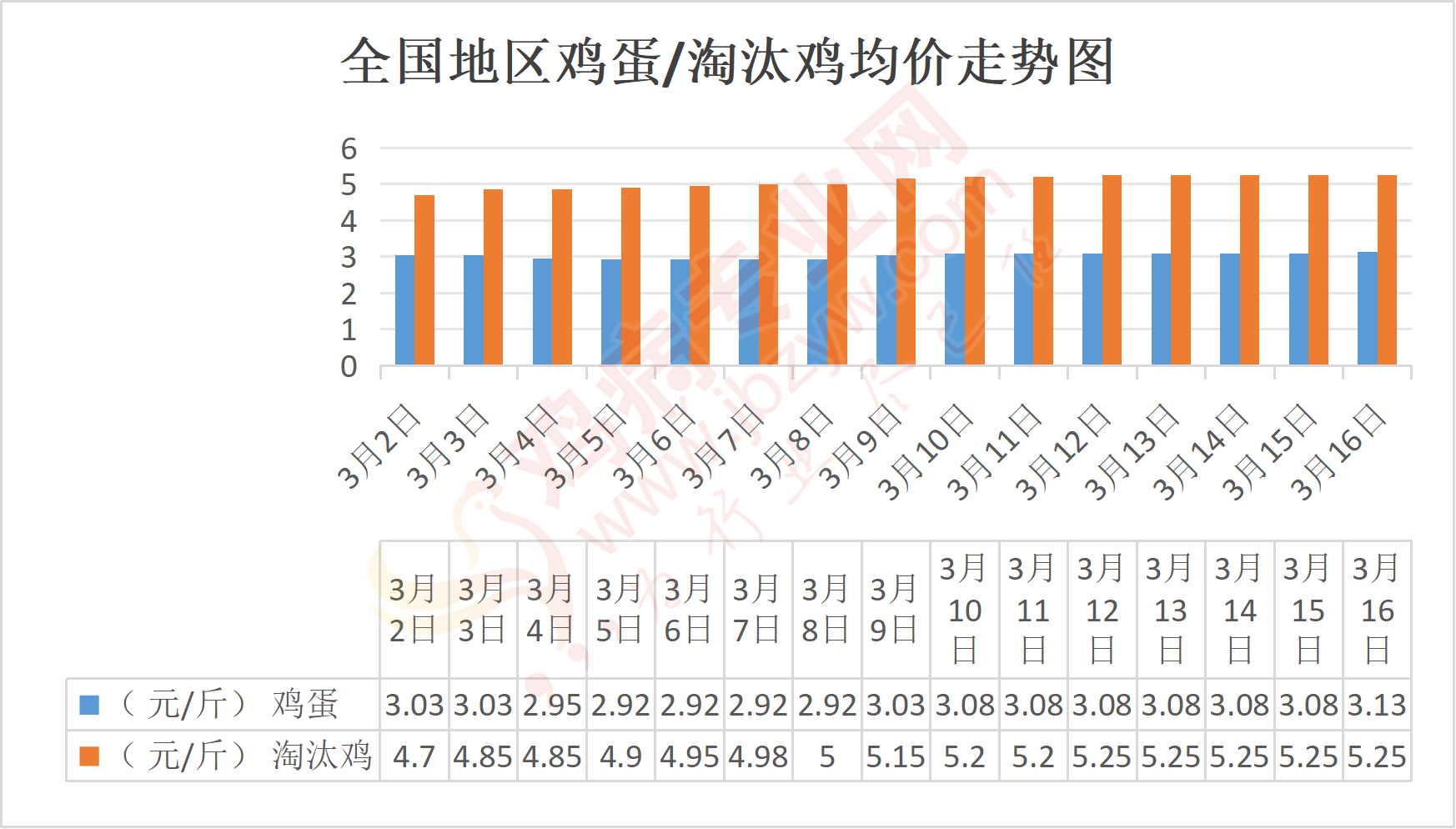 3月16日我国部分地区鸡蛋、淘汰鸡价格汇总