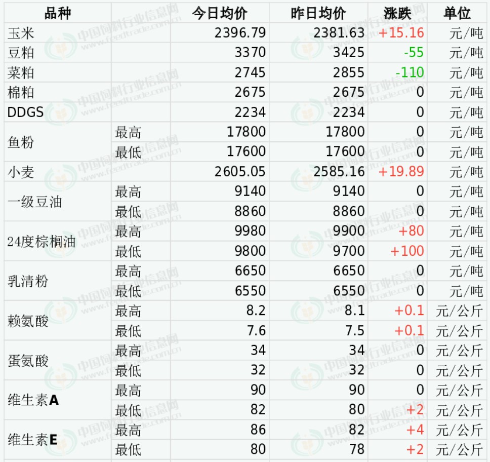 2026年3月16日国内饲料原料行情汇总