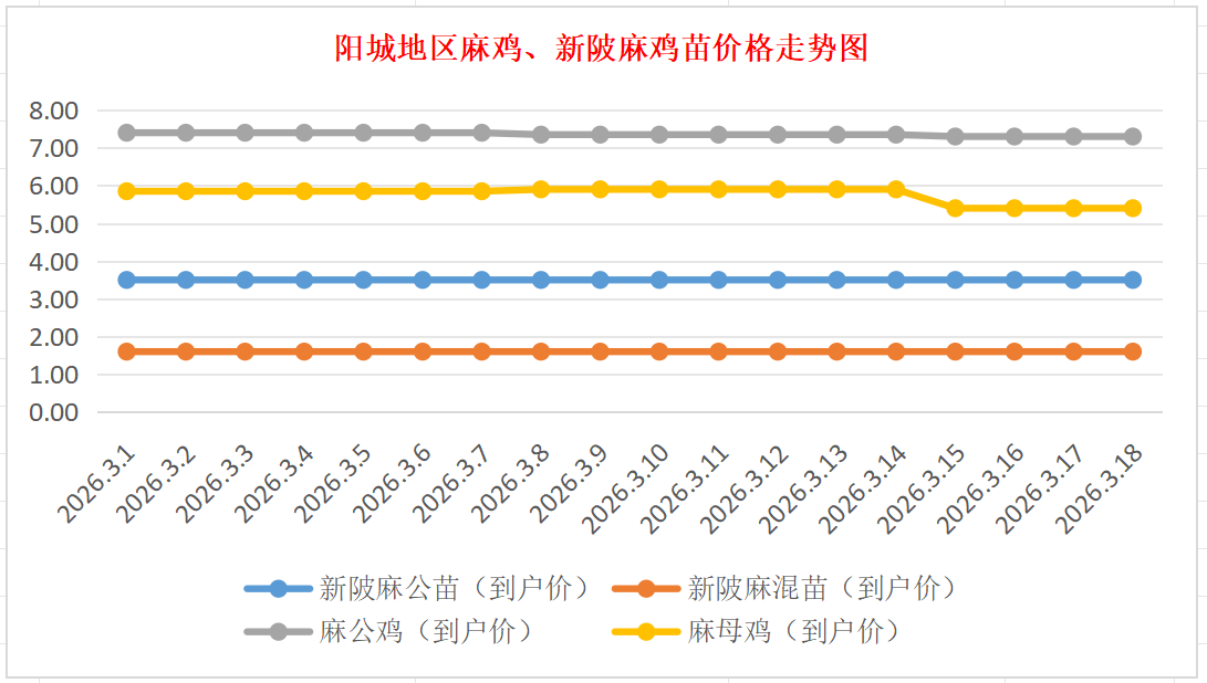 麻鸡成鸡:价格稳定,麻公鸡棚前出栏价7.20-7.40元/斤左右(5.8斤以上),麻母鸡棚前出栏价5.20-5.60元/斤(5斤以上),稳。