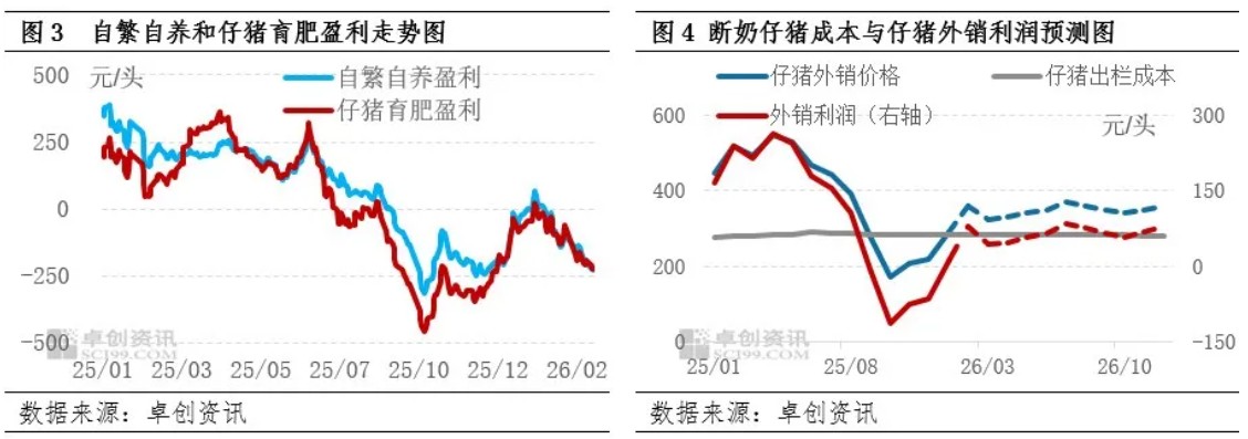 2026年国家政策力度继续加码,有望推进高成本产能去化进程,叠加2026年处于产能继续释放的一年,上半年养殖端或同时面临猪价长期磨底的亏损,以及饲料成本上涨的压力。2026年产能仍过剩或导致养殖盈利明显缩水,政策与市场供应过剩的局面或共同驱动母猪产能加速去化,结合成本与盈利预测数据,预计3-6月为加速去化期,7-9月转为缓慢去化。