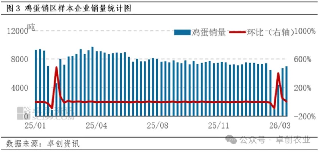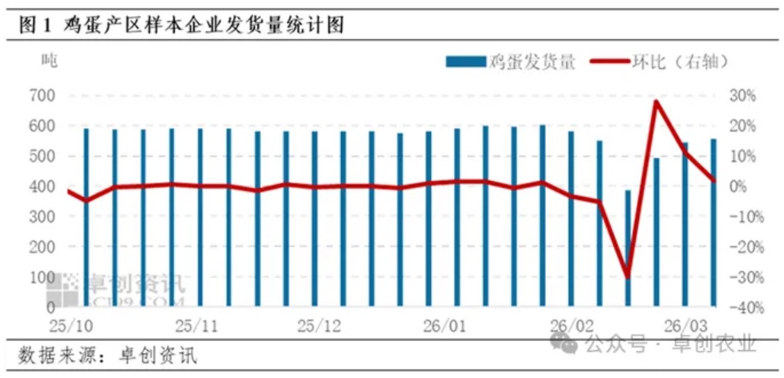 3月鸡蛋市场需求季节性回暖,发货量累计上涨超10.00%