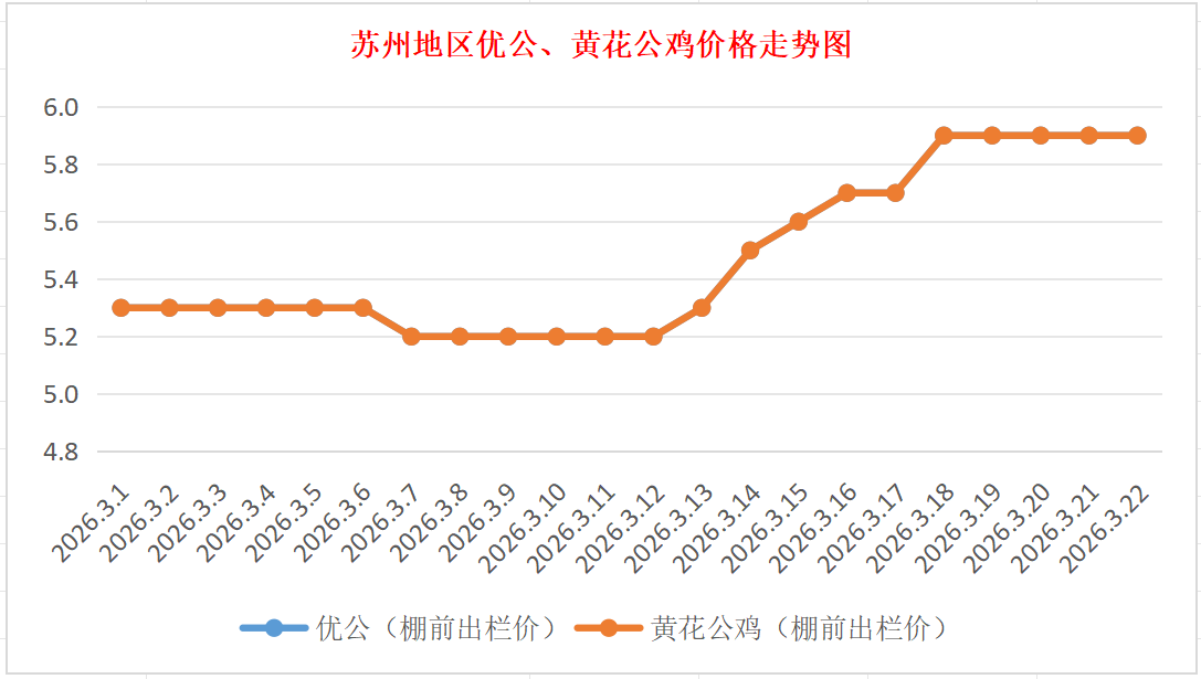 3月22日江苏(苏州)优公、黄花公鸡价格行情