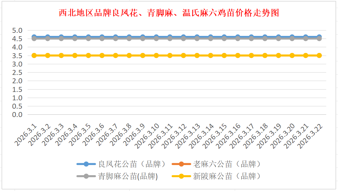 品牌新陂麻:价格稳定,到户价公苗4.50元/羽,稳。