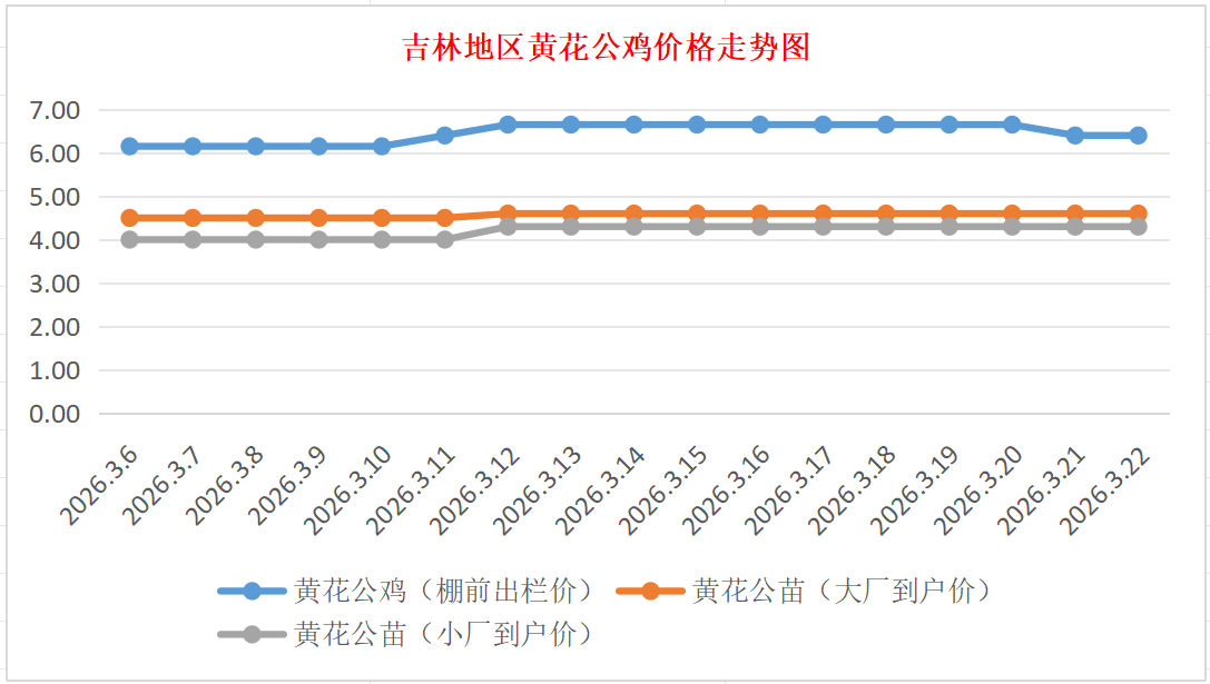 3月22日吉林黄花公鸡、鸡苗价格行情