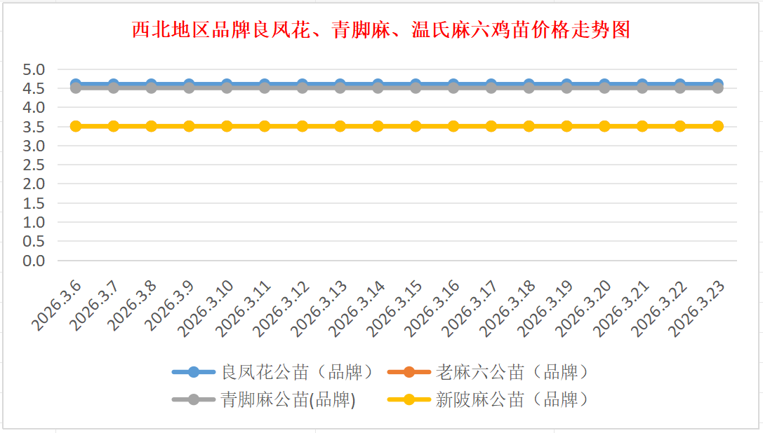 品牌新陂麻:价格稳定,到户价公苗4.50元/羽,稳。