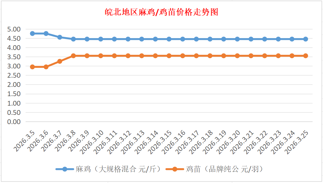 鸡病专业网独家信息:2026年3月25日皖北地区817-麻鸡行情最新走势